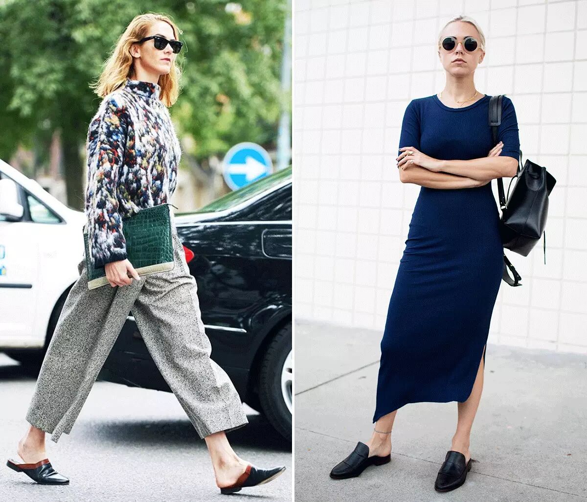 而今年很红的穆勒鞋要属平底款式的最时髦,它不但是尖尖头可以拉长曲线,脚踝部分全部裸露更显纤细。(穿穆勒鞋侧面会显得脚特别大,我还有一个朋友买鞋总买大2个Size,据她说是脚大会显腿细)▼