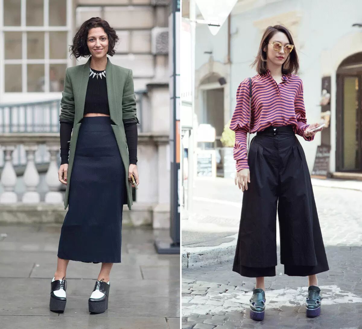 但我觉得厚底款的穆勒鞋超级难穿,很容易崴到脚。Fendi拍的街拍(下右图)就是这种类型的鞋子,走起来得非常小心。▼