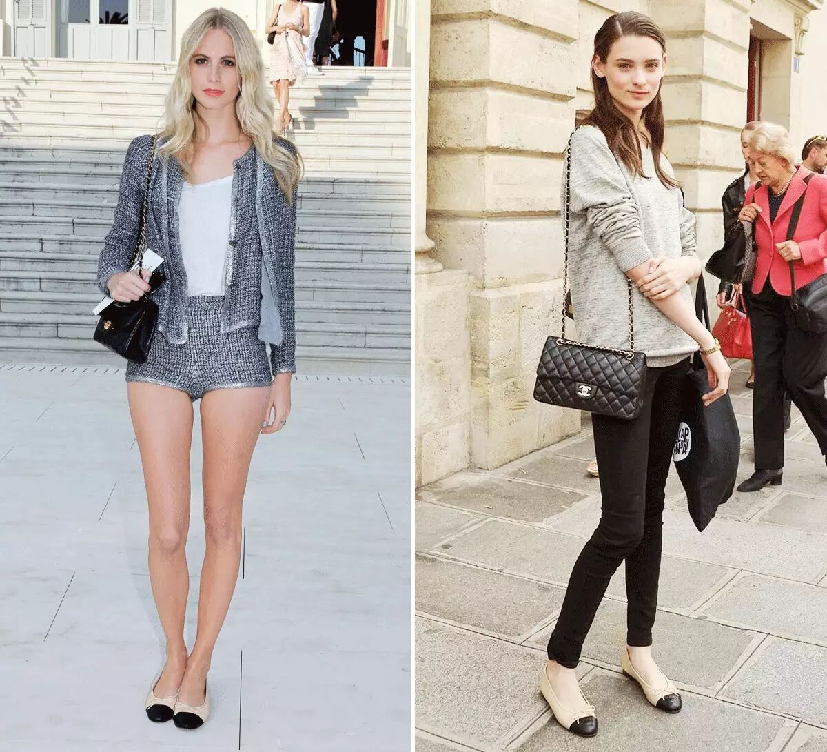 Chanel这双鞋头黑黑的裸色平底鞋就是因为有长腿效果才人气暴涨的呀~▼