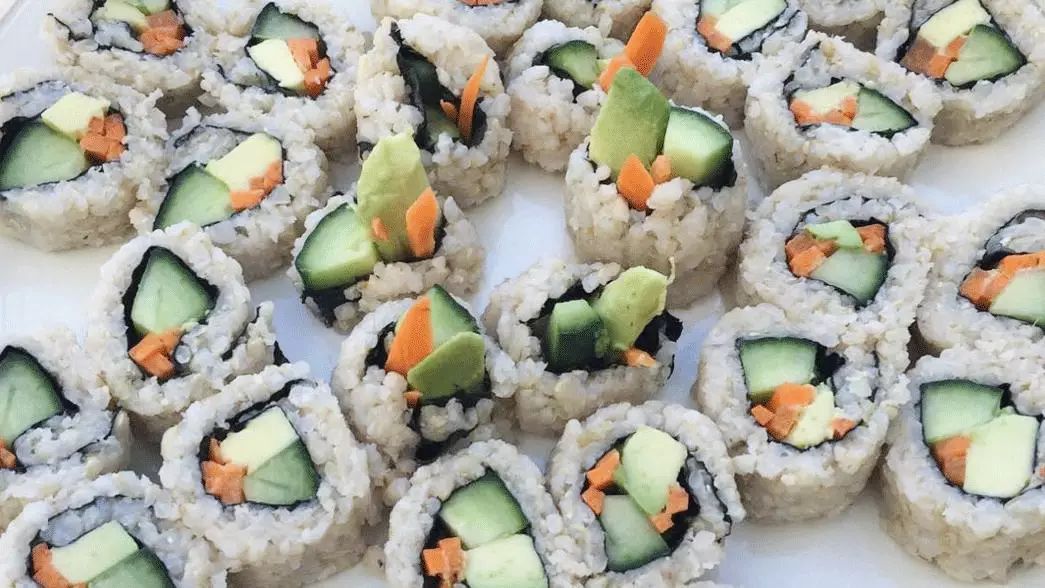 天神的孩子自然也逃脱不了被挑食的命运,他们有属于自己的儿童寿司,仔细的客官一眼就能看出里面只有一小根黄瓜、一小块胡萝卜和牛油果。