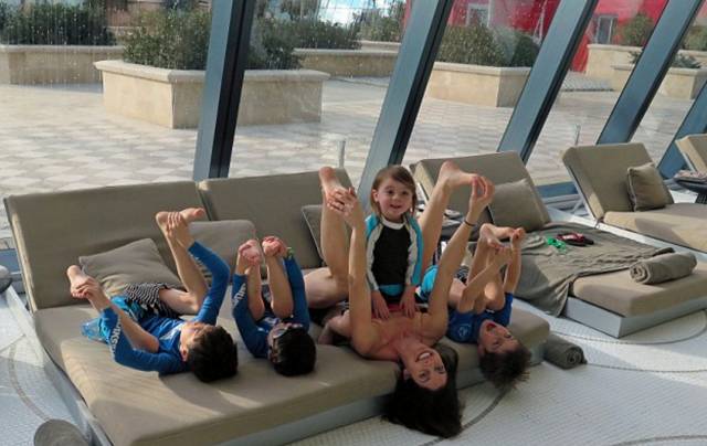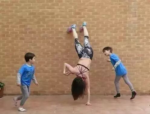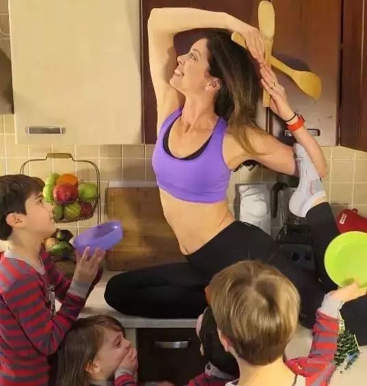 她的这套健身方法不仅可以让她拥有完美身材而且可以带着熊孩子们一起强身健体
