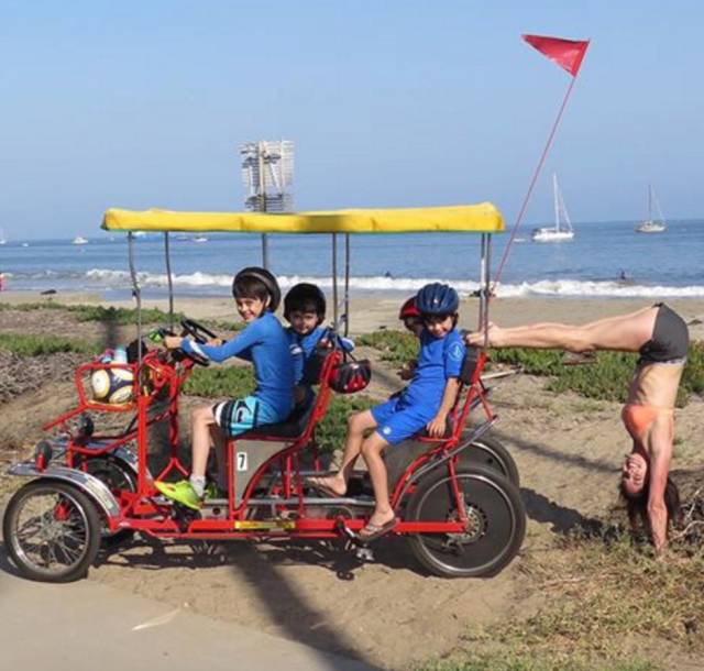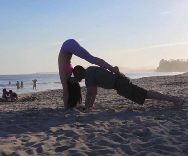外出度假也要背着、抱着、跟着全家都被妈妈的瑜伽洗脑▽