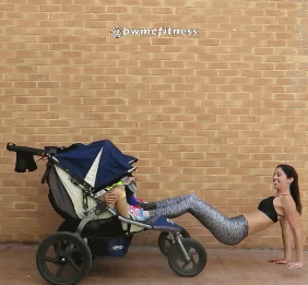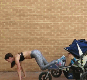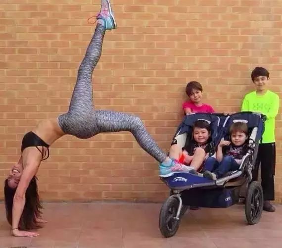 想健身不一定非要去健身房任何东西都可以拿来使用(这点我举双爪赞同)孩子们的婴儿车也能让她玩出新花样▽