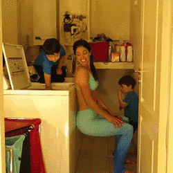整个家都是詹妮弗的健身房每个熊孩子都是她的陪练▽