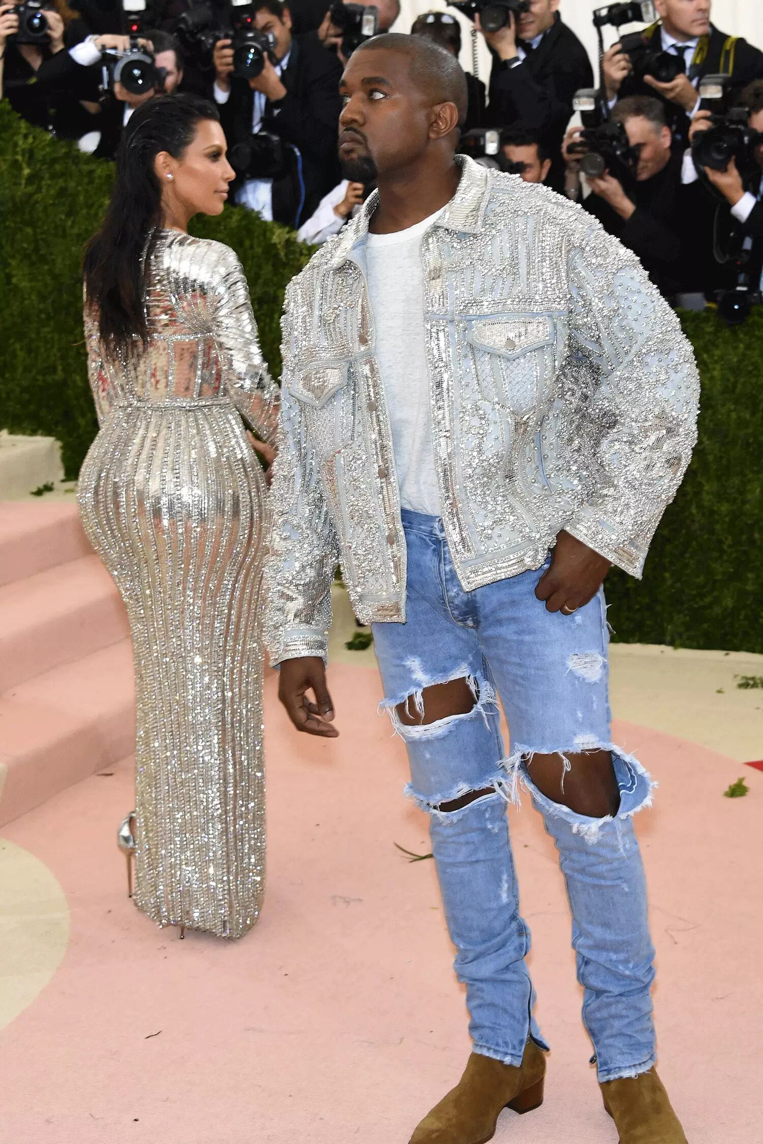 当别的女明星都在费尽心机开发pose的时候,大概只有Kim Kardashian躺在家里的沙发上一杯红酒配冷笑,因为,她不用想怎么岔腿,也不用管怎么叉腰,她只要侧身站着,把举世闻名的屁股撅着对准镜头,就功臣圆满了。