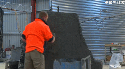 太牛逼了吧!当然,这对于KUKA机器人来说还只是小菜一碟。除了锯木头,他居然还能造房子——工作人员首先堆了一堆水泥▼