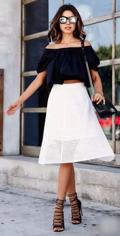 大腿有肉但小腿漂亮的姑娘,长度到膝盖是你的绝佳选择,飘逸柔美,又能露出纤长的小腿线条。