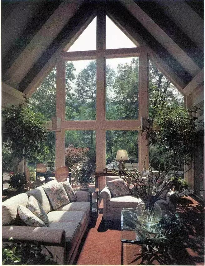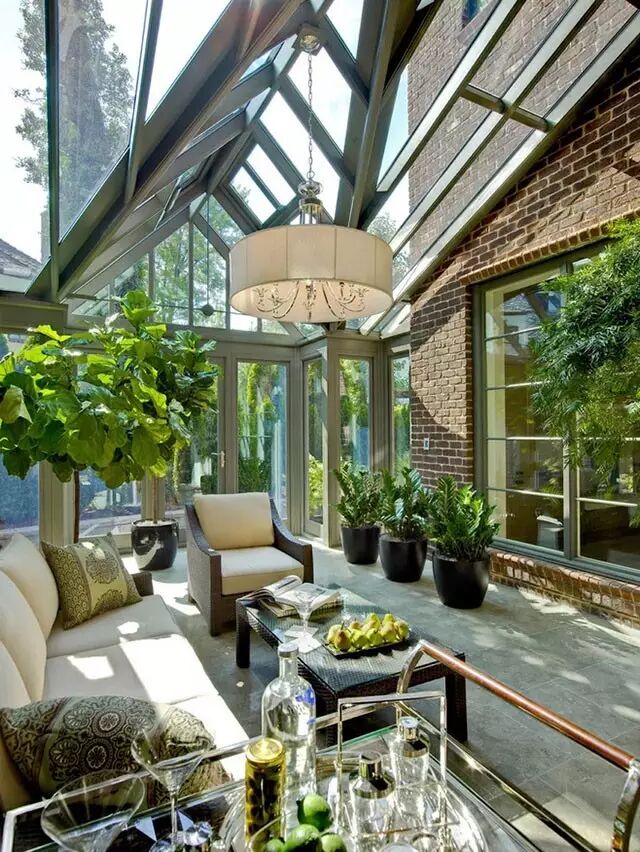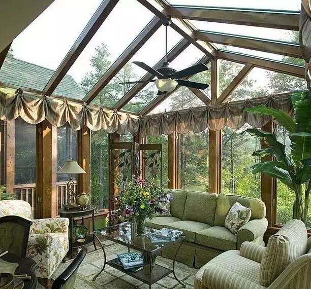▽绿植是阳光房的好伴侣,少了绿植的阳光房就像吃饺子没有醋,充足的阳光下植物光合作用,天然的制氧机。够高的空间多考虑高大的喜阳的植物,当你犹豫哪里空着需要摆的什么的时候,考虑绿植吧。