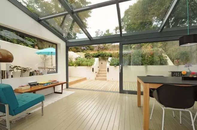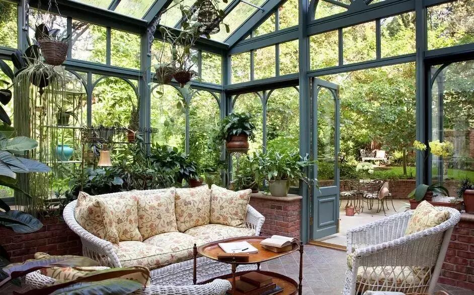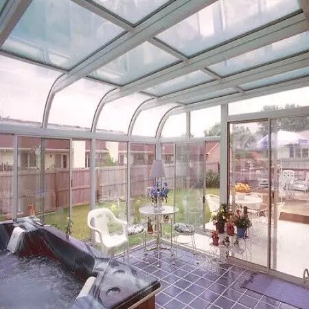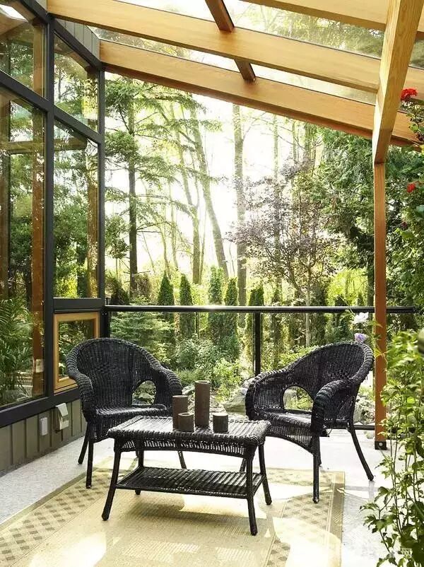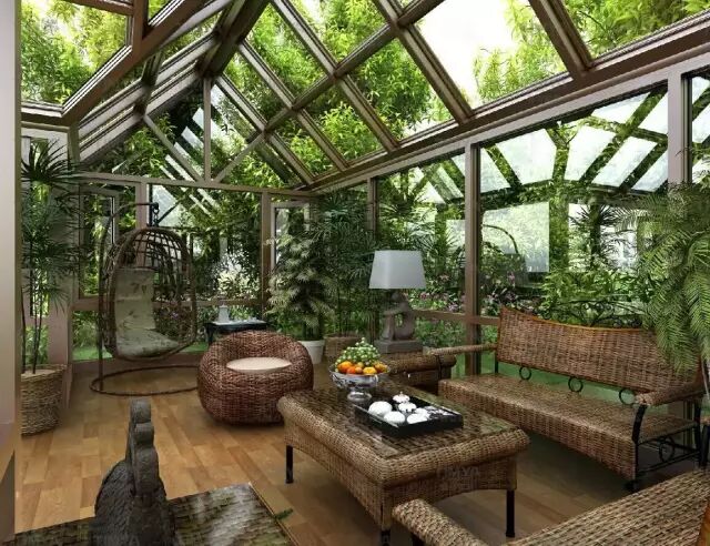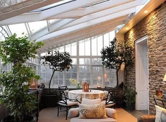 很多看起来是木材的阳光房很可能是木包铝的结构,实木造价高,容易开裂老化,指望油漆对它的保护是不够的,另外榫卯结构不是所有施工方都能做的很好,那么工厂加工后安装的木包铝是个非常好的选择,结实耐用,密封性好,亲近自然。
