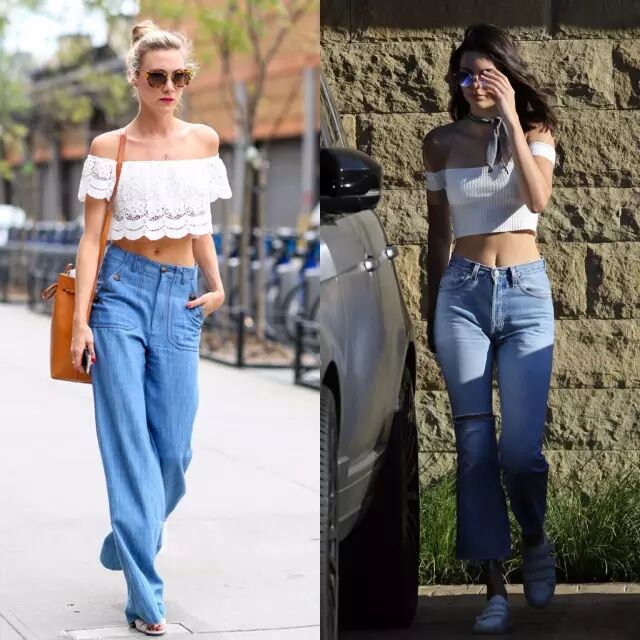 别忘了今夏最in的off—the—shoulder,配上牛仔短裤看起来也很清凉,冲走夏日的沉闷酷热。