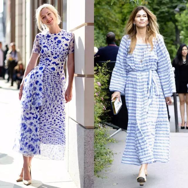 或是蓝白相间的裙装,增加了视觉效果上的清爽感。