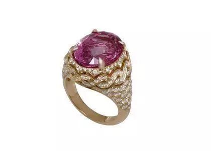 中式礼服相应的戒指为顶级彩宝钻戒,中央的红色尖晶石有12.75克拉!大约价值人民币87.6万