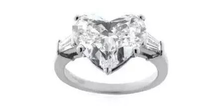 林心如用来配婚纱的这枚铂金镶心形切割主钻重5.03克拉,两颗梯形切割钻石分别重0.46克拉~造型还是满满的少女心~