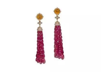 上午迎亲林心如身穿一身红色镶金中式礼服,佩戴的则是宝格丽顶级彩宝流苏耳环,约合人民币115万