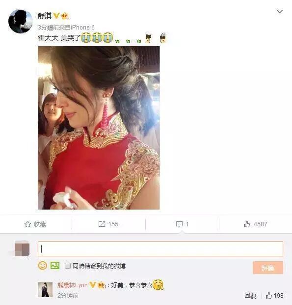 舒淇晒出的霍太美图!什么时候轮到你当新娘呢?