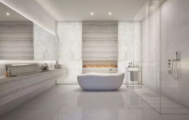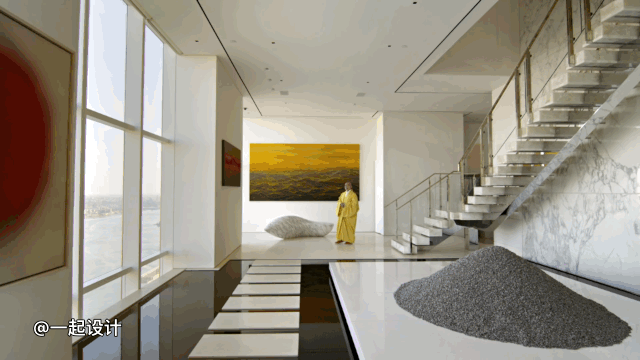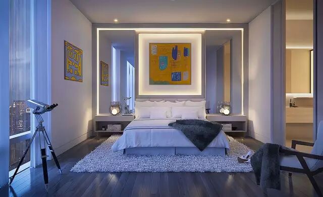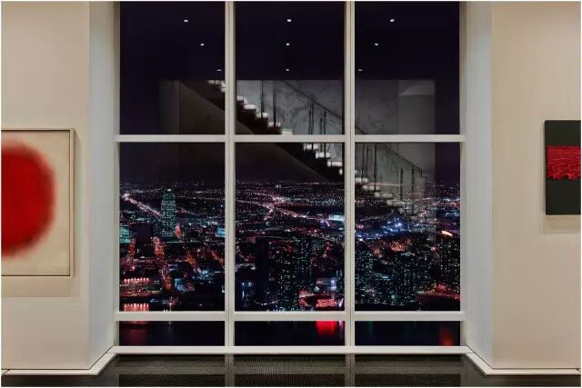 墙面上,宛若披上了一层蓝紫色的纱巾