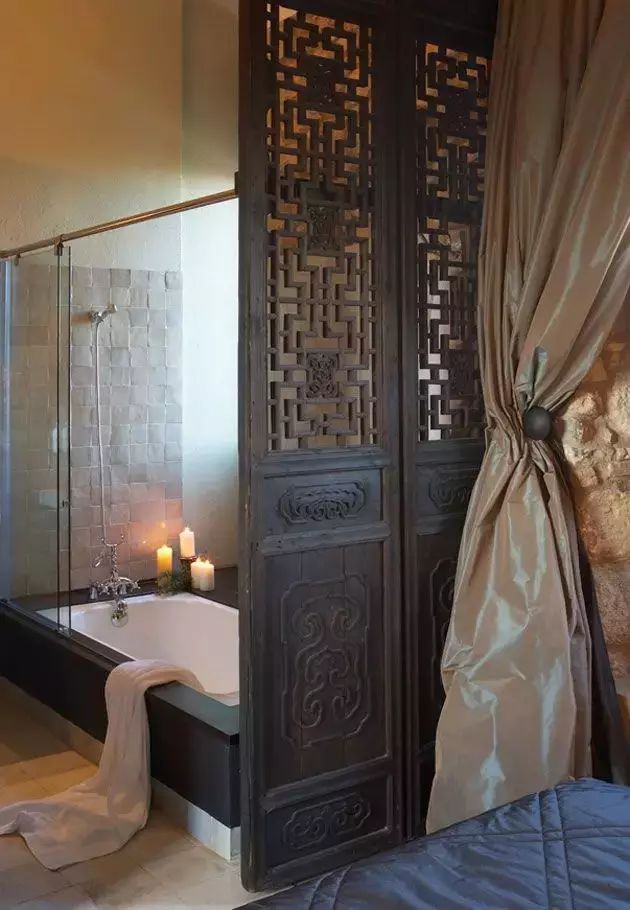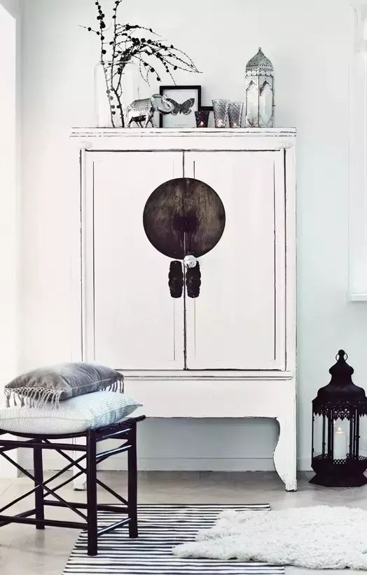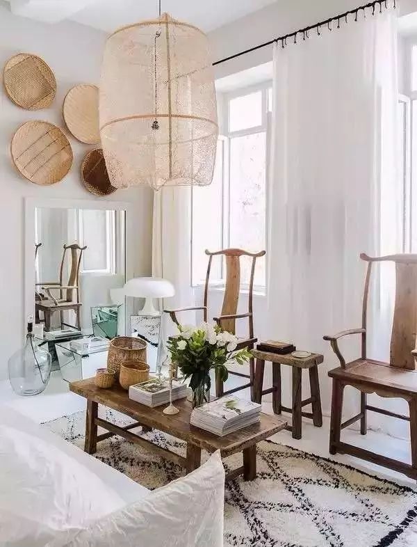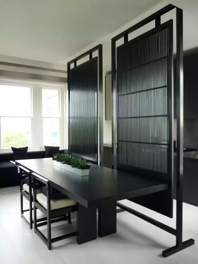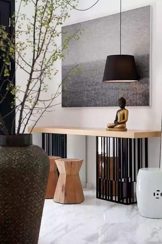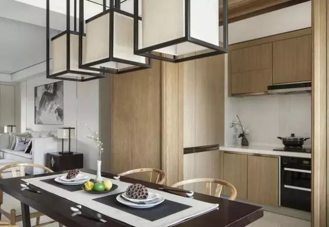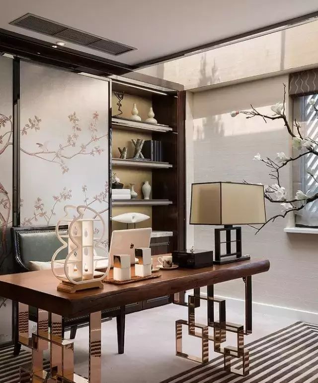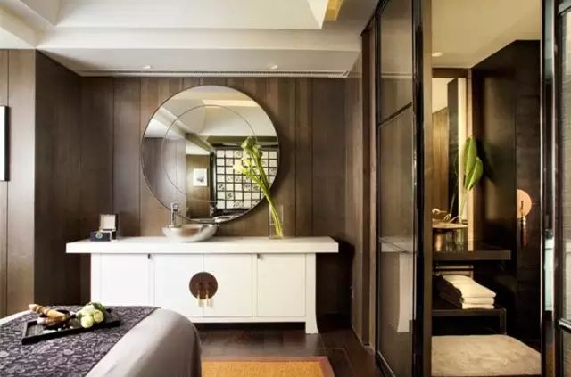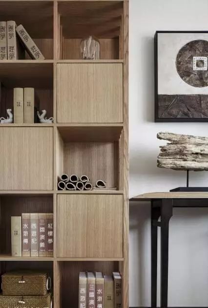 传统中式风格的天花板主要分为天花和藻井,门窗则一般使用棂子做成方格图案。在简约主义风行的今天,设计师更倾向于将这些元素融入现代风格的室内设计,体现对中式传统的精神追求。圆形月洞门搭配镂空直棂窗的组合,突出了“天圆地方”、“天人合一”的哲学理念。不适合做门窗的布局,可使用装饰画、地毯等突出方格式设计,而圆形的月洞门则巧妙地化为了镜子。新中式风格对于线条的运用力求简单流畅,但又融合着精雕细琢的意识。与传统中式家居最大的不同在于,保留了传统元素的神韵,却又没有一味照搬。在需要隔断的地方,使用中式屏风、木门、简约的博古架等,就可以营造中式家居特有的“移步换景”之美。传统书房少不了书柜、书案以及文房四宝。这些古典元素运用到新中式风格里,能够营造独有的东方气息。普通人家家居面积有限,因此,在新中式风格中,运用设计感强烈的中式桌椅家具,结合传统明清家具的结构,就能实现“四两拨千斤”的效果。摆放一个对称式的带铜把手的中式橱柜,传统文化的感觉也会呼之欲出。淘来几个竹篾编织的竹筛悬挂在墙壁上,就能打造传统田舍人家的乡野清新风格。在几案上摆设陶瓷、花瓶等器物,也能起到“画龙点睛”的作用,来营造东方特有的禅意。