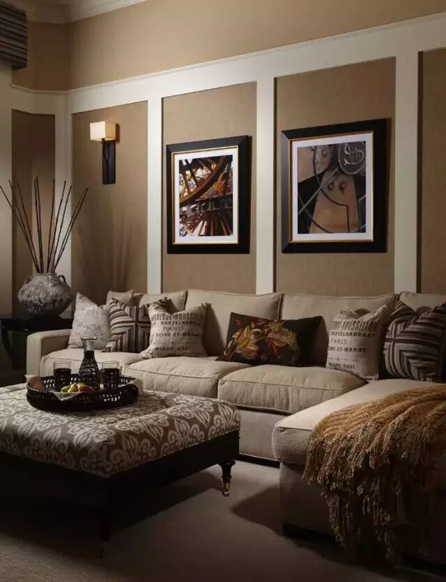 同种色调的画搭配在一起挂,效果非常好。当然最最重要的还是主人选画的品位,每张画都要好看才可以!