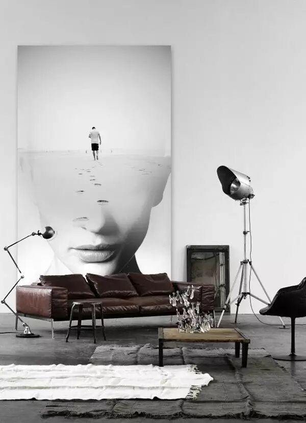 如果你家有一面非常完整的墙可以用来挂画,可以就挂一幅大画,过瘾,有气场。