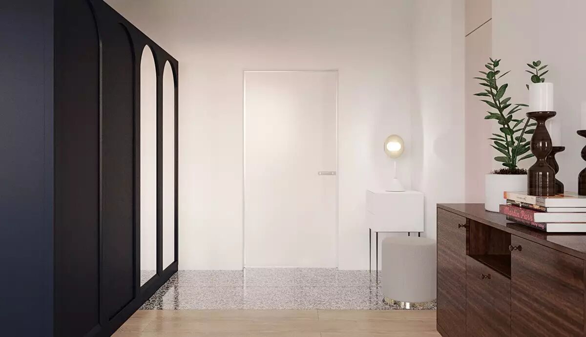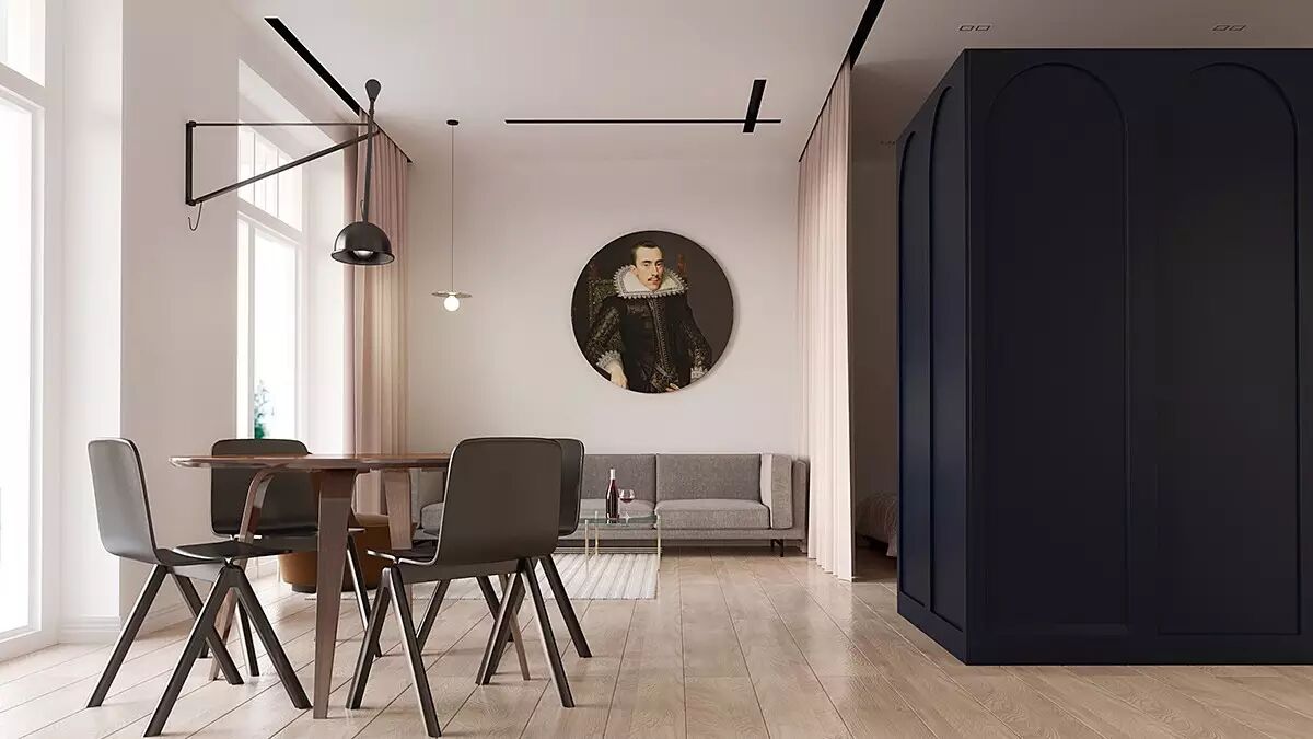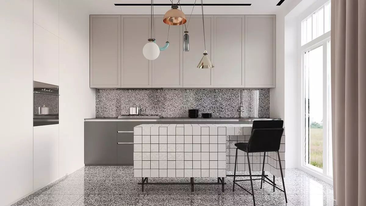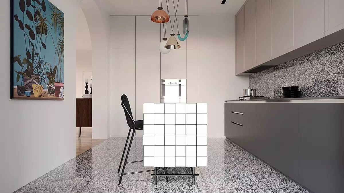 整个空间以灰色系为主基调,搭配极简主义的家具,感官上简约整洁且显得十分优雅。