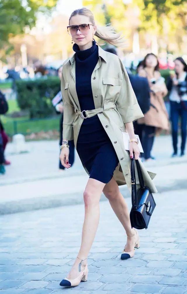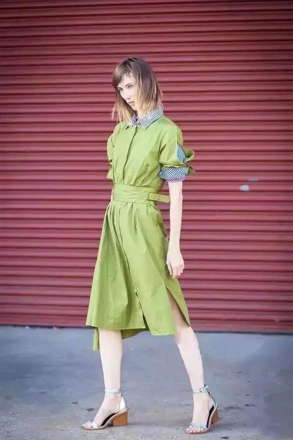如果小方跟稍稍粗大一点, 搭配衬衫裙、风衣裙会让你更显更率性