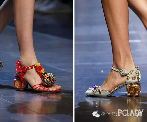 Dolce & Gabbana 2016春夏是繁复西西里风情和pom-pom毛球的天下 美腻的小方跟那么多,有木有挑花眼的感觉?其实只要挑对今年的必备款就能时髦一夏天,不需要多,一两款就够你们去装X了。 玛丽珍款 一条简单的系带就能让御姐一秒变少女说的就是玛丽珍鞋