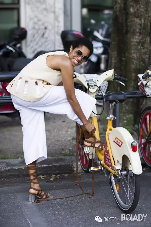 最适合绑带鞋的无疑是短裙, 绑带绑在腿部的长度不超过15cm,很显腿长