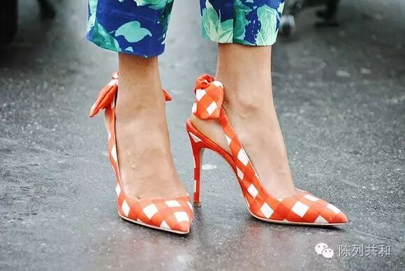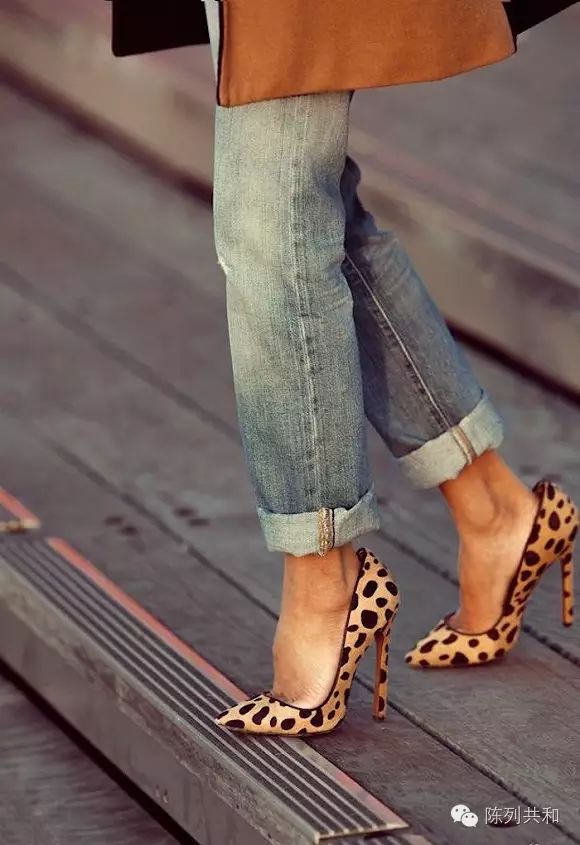 三、印花高跟鞋 除了基础色系,有时候还要玩点花样咯,印花款式的高跟鞋,女人基本拒绝不了。 1、豹纹印花