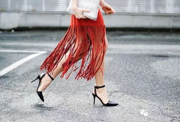 ▲脚踝(或者脚背)被绑带缠绕,肌肤的颜色若隐若现,尤其这种大红色显得肤色更好看了。
