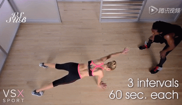 还有金小妹,不是在运动就是在运动的路上! 塑身大作战! 也许你羡慕她们有着得天独厚的体型条件,其实,只要后天足够努力,素人女生也可以拥有完美的身材哦,不信来看看维秘专业教练指导Doutzen的亲身示范。 不需要过多器材的腹部健身,在家就可以试起来~ 热 身 先是简单的开合跳,持续1到2分钟。