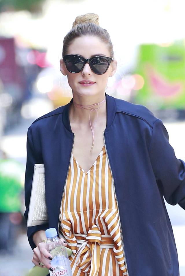 就连Olivia Palermo (奥利维亚·巴勒莫)也爱不释手。走到哪儿扎到哪儿,全身单品连墨镜都换了,就是不摘下它。