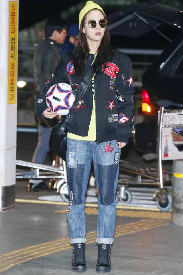 拼贴和牛仔衣、牛仔裤、皮衣、夹克、挺括的大衣都特别配,风格可以童趣搞怪,也可以嘻哈朋克。