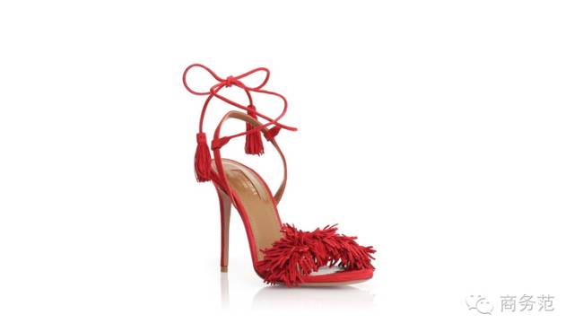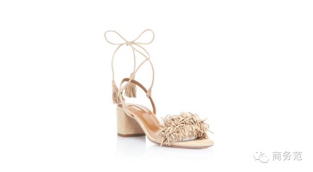 如果实在很喜欢绑带和流苏,AQUAZZURA也是有低跟款,而且是粗跟,范主觉得这款也是相当美貌的↓