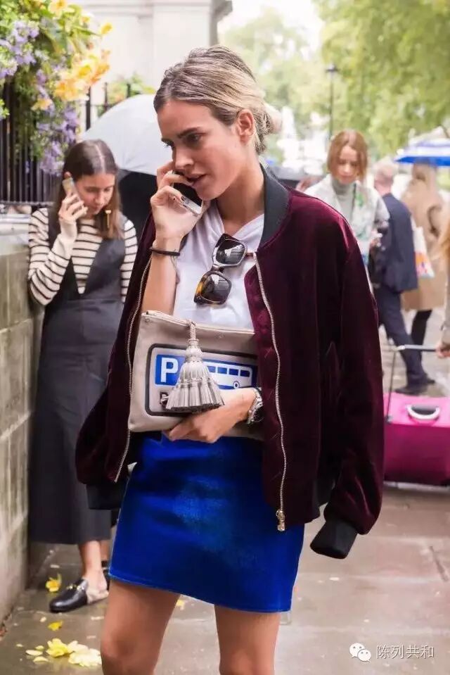 ▲Bomber Jacket 撞上天鹅绒又是另一种帅气,再加点儿刺绣不能更完美,里面穿素一点,随便一搭,范儿就起来了。