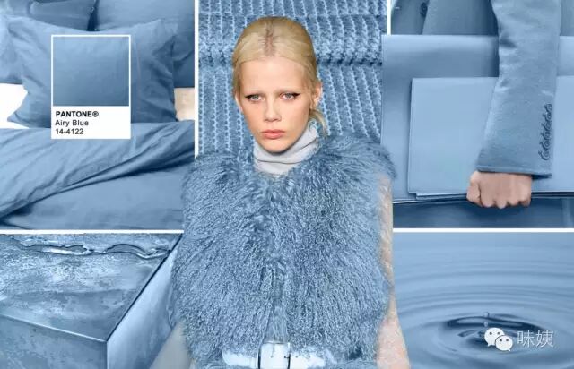 6.通透蓝 Airy Blue 越是寒冷厚重的季节,越要加入轻快明亮的颜色,而通透蓝不仅让人轻松愉悦,更是给人一种俏皮感。