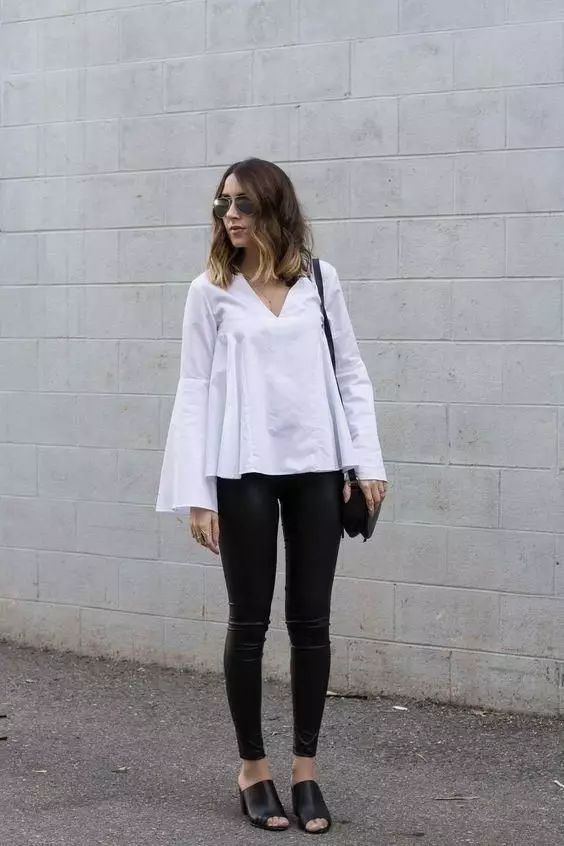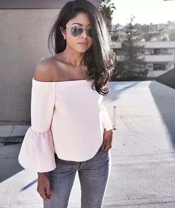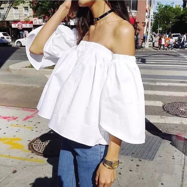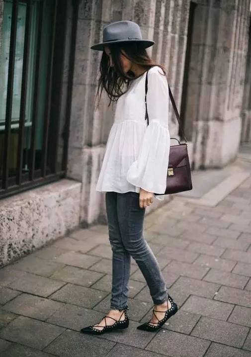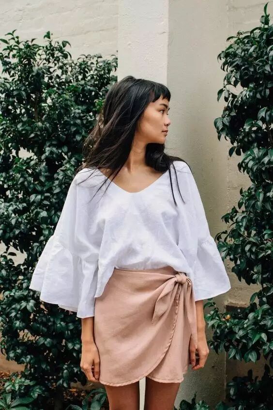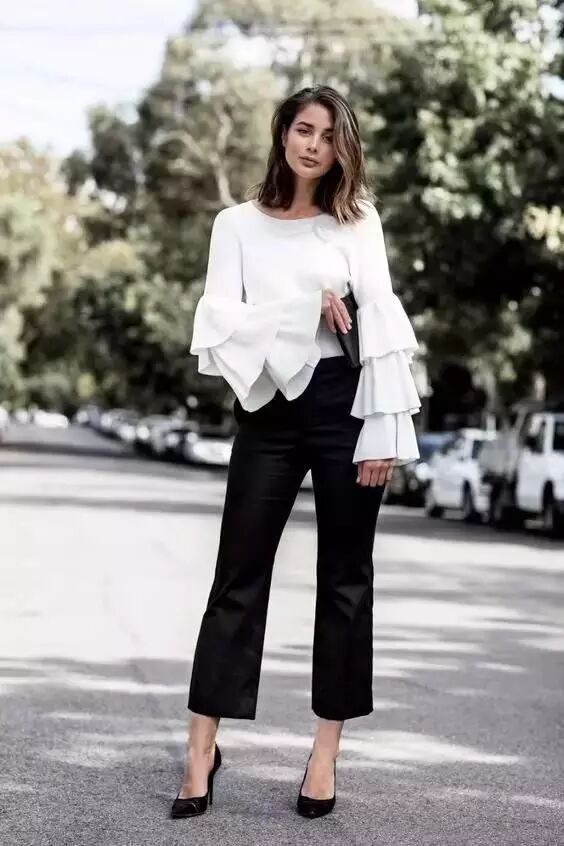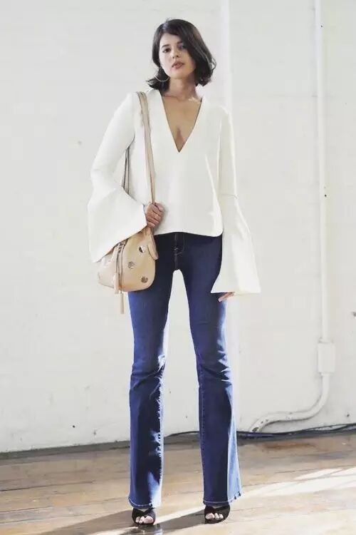 重点是,喇叭袖真的超好搭配~ 短裤喇叭裤紧身裤牛仔裤背带裤半身裙~ 统统都可以~