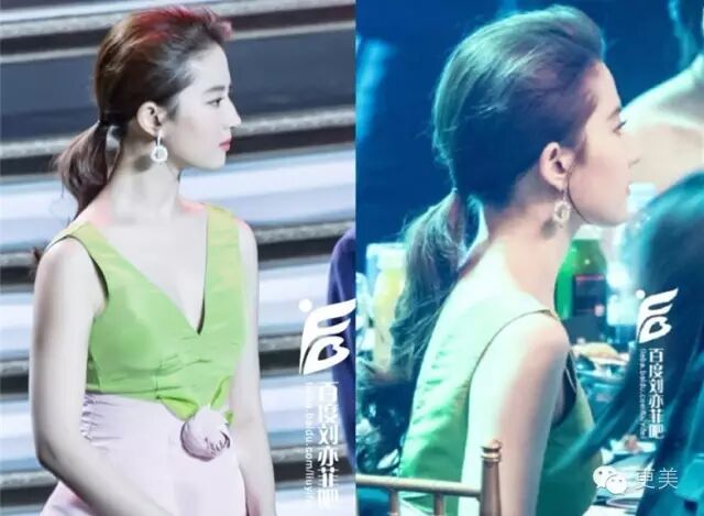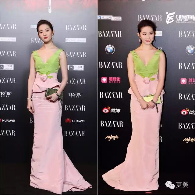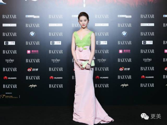 第一眼看到刘亦菲,被她身上的一抹绿闪到眼睛,穿的像个寿桃喂!