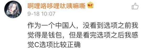 客观来讲,这首神曲的说唱字正腔圆,大部分听题时不那么嗨的选手都可以答对(答案是A.钱包)。