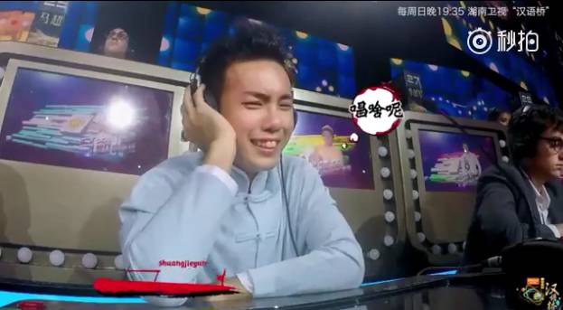 这是《汉语桥》中文比赛的现场,当选手们听到“请听歌曲回答问题”的时候,神情肃穆,严阵以待。