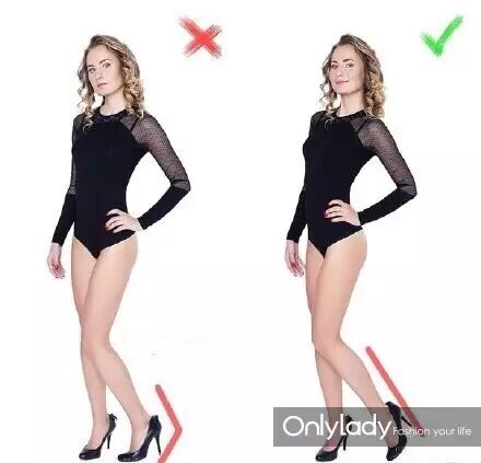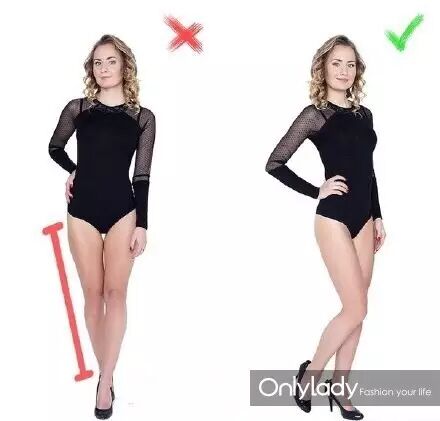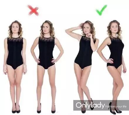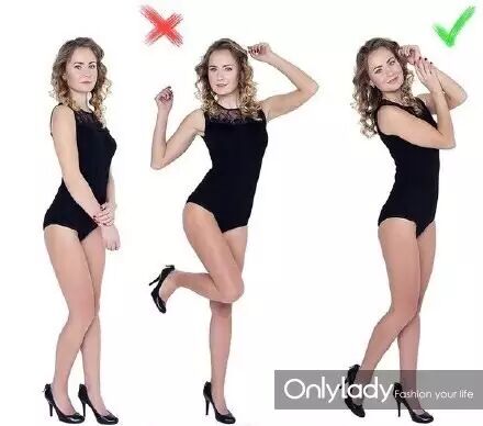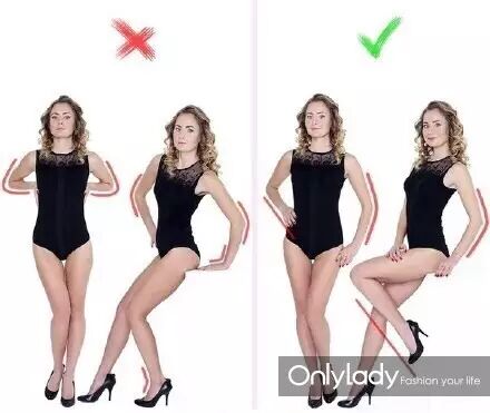 注意不要让两腿都保持直立状态,一只腿稍弯曲显腿长。
