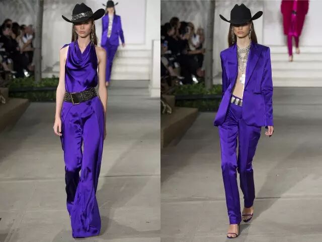 缤纷色彩的奢华绸缎 谁说西部风情只能是黑白、驼色?这次Ralph Lauren使用了大胆鲜艳的颜色,丝滑材质的绸缎面料配以简洁修身的裁剪,张扬与优雅毫不冲突。▼