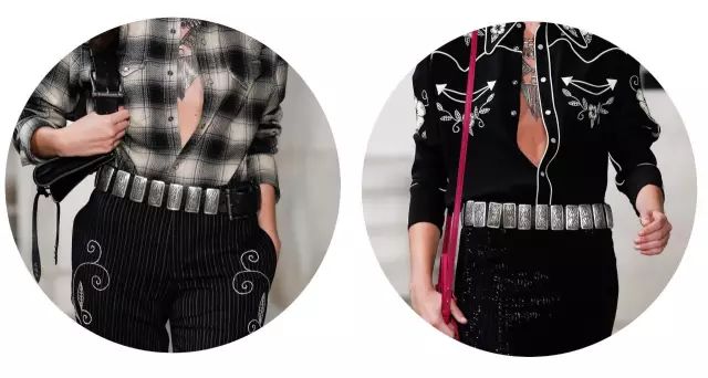 金属宽腰带,富有光泽的复古未来主义色彩。▼