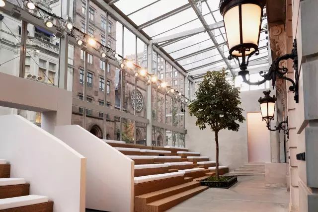 Ralph Lauren秀场看点1:秀场布置&崭新的销售概念 和以往不一样的是,此次Ralph Lauren承包了纽约一整个街区,不但将秀场搬上了麦德逊大道Ralph Lauren旗舰店门口,还在人行道上搭建了一只“珠宝盒”的玻璃场景,相当壮观。▼