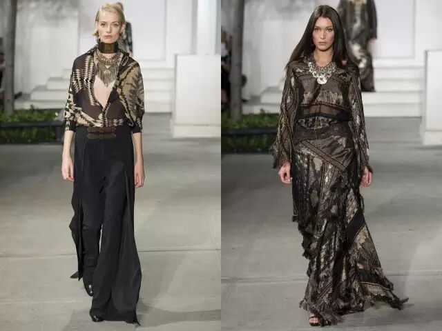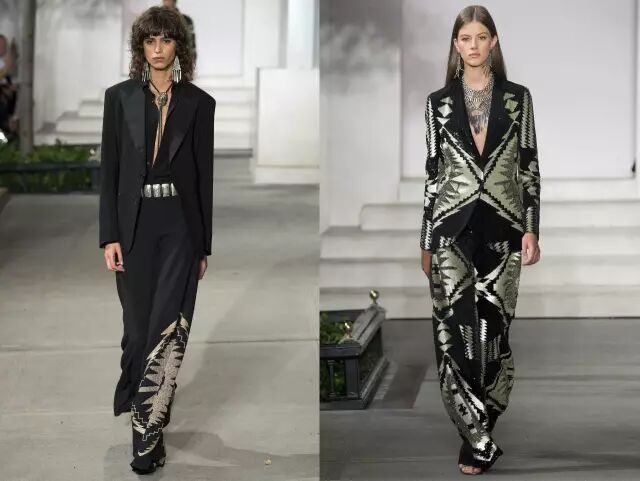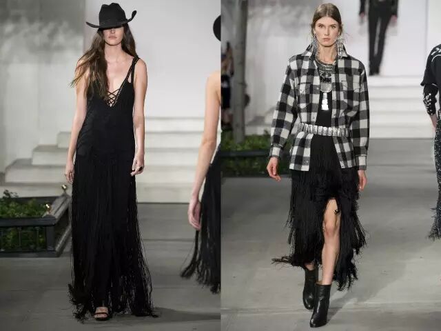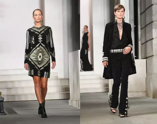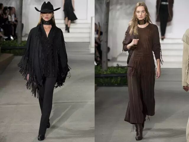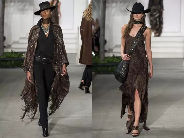 Ralph Lauren秀场看点3: 帅气优雅的美国西部风情 不过这次的设计风格上,老爷子融入了美国西部情怀,既有粗犷之美,又不缺乏浪漫气息,带来一系列更加休闲流畅的部落牛仔风。▼