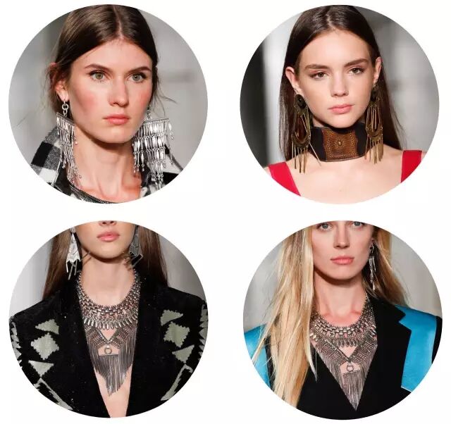 个性配饰 服装干练利落的线条,让夸张造型的流苏大耳环和长项坠也成为本季秀场造型的点睛之作▼