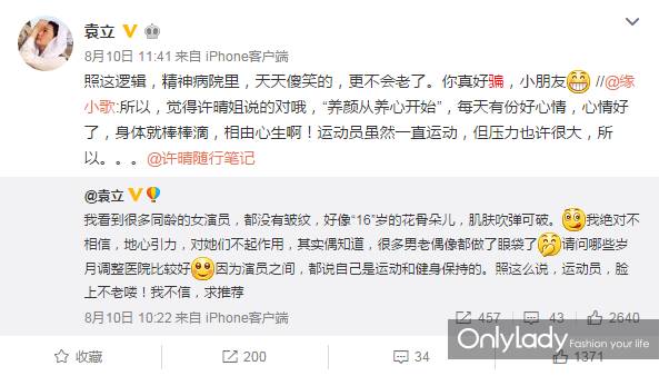 而有网友提到了其同龄女星许晴,说心情好才会好,对此袁立则立刻给予回复,并对该网友说真好骗。