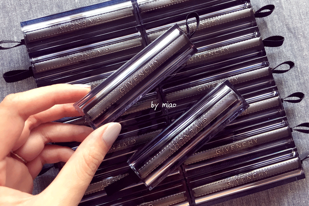GIVENCHY ROUGE INTERDIT VINYL 禁忌之吻漆光唇膏 小名儿“黑丝带”~ 2016. 8 中国区上市(参考价:320元 / 3.3g) 整体测评 配方:据说特别添加了黑玫瑰精油,能有效滋润护唇;(亲测不虚!) 质地:全系列质地都非常水润; 气味:味道是特调的甜美果香,带来愉悦的使用感; 妆效:大多数色号都带着高级的细闪,上唇后形成柔焦感的反光层,让嘴唇显得立体饱满。顺滑易上色,持久度嘛,你懂的!适合日常; 包装:外壳是雾面暗灰色亚克力,内镶黑丝银线缎带,唇膏尾部沿袭了老版禁忌之吻经典的黑丝带缠绕设计,整体非常有质感! 裸