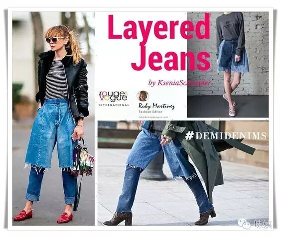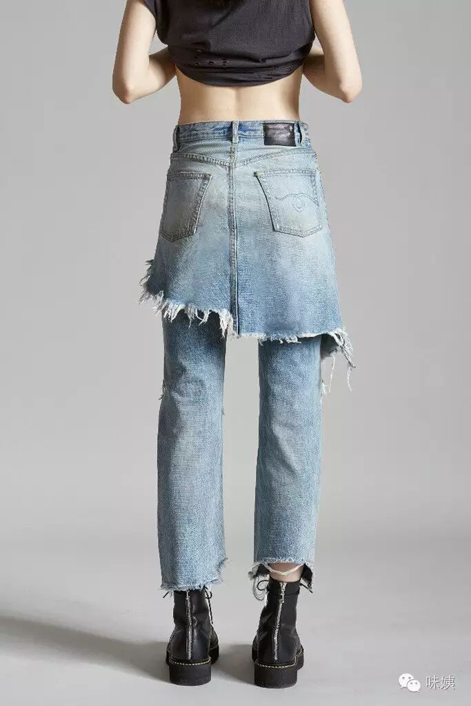 其实这种双层牛仔裤叫Demi-Denim。牛仔裤是永恒经典不败的单品,虽然已经有了很多款式,但是不管什么行业,创新才有发展,所以Demi-Denim应运而生了。