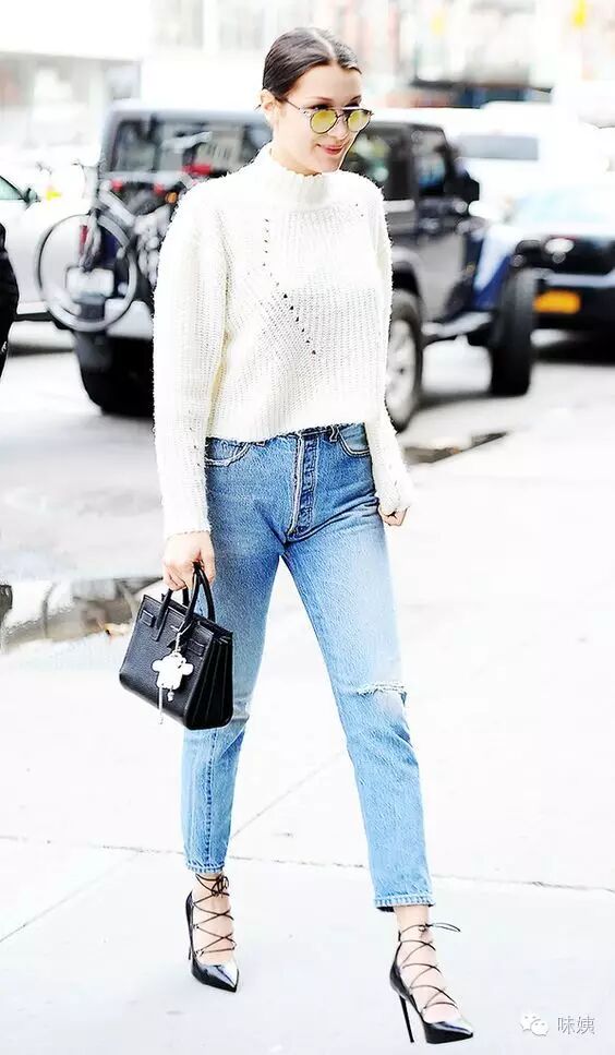 Gigi最近对这条牛仔裤爱的深沉,换了件top,没有了牛仔外套,看起来就没有那么繁杂,这样一看,还挺时髦的。