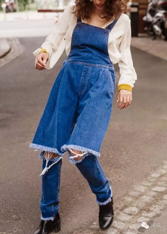 ▲Ksenia Schnaider 2017 Spring RTW Collection Ksenia Schnaider的牛仔裤看起来就像由一条牛仔短裤跟一条牛仔长裤拼接而成,让人第一眼就困惑:这tm究竟是短裤还是长裤?!